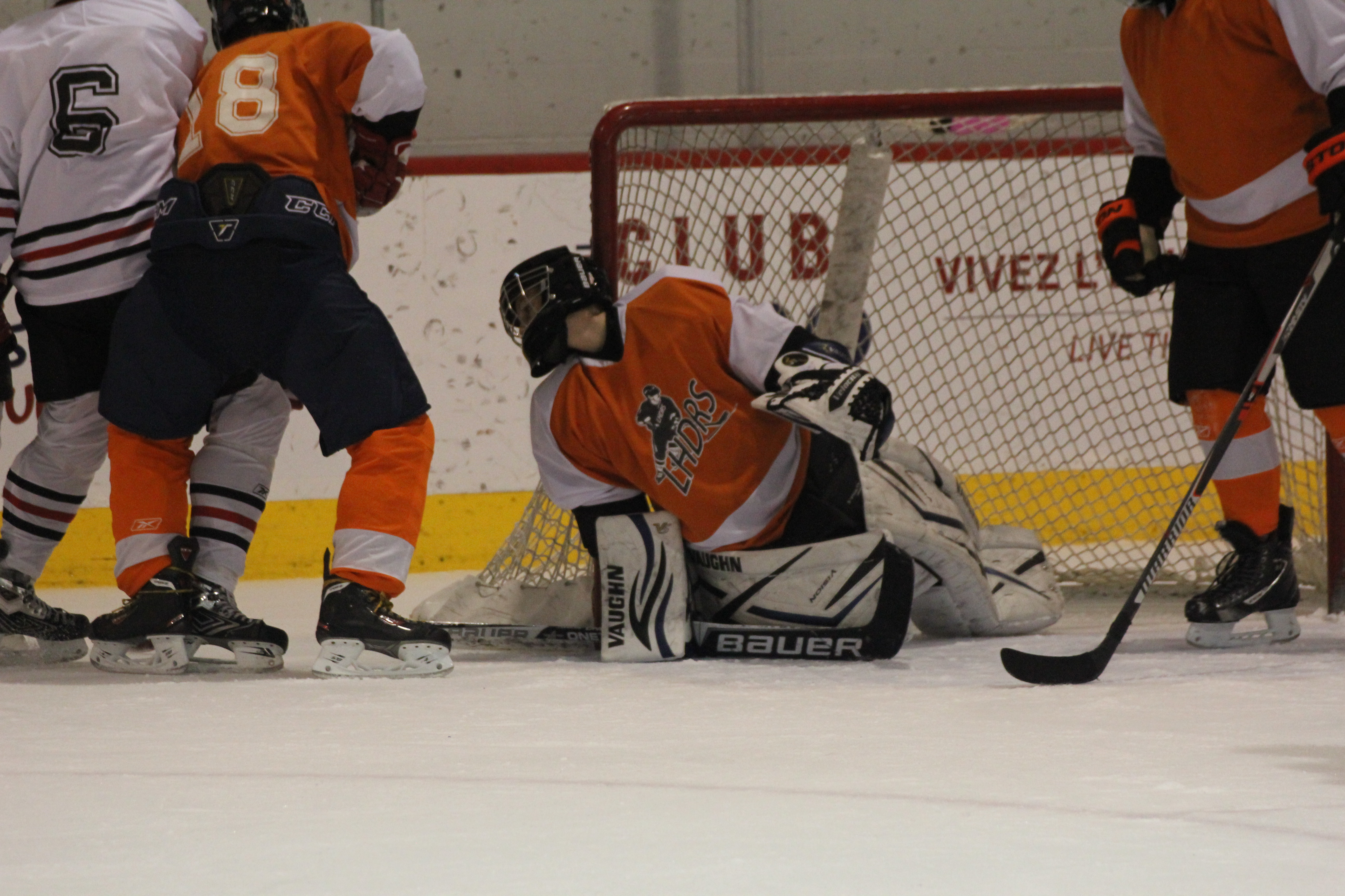 La première période a, en effet, été dominée par les Blackhawks qui ont imposé leur rythme. En dépit de plusieurs tentatives acharnées dont celle de Martin Paquin, la gardienne des Flyers Christine Plourde a réussi à garder son équipe dans le match en effectuant bon nombre d'arrêts clés. Ces derniers ont tout de même été les premiers à ouvrir la marque avec le but de Mathieu Beaudry, mais à peine une minute plus tard l'attaquant Yanick Bibeau provoque l'égalité. Même si Nicolas "The Chest" Côté n'est pas revenu du congé des fêtes au sommet de sa forme, il nous a offert une belle montée de la rondelle qui s'est conclue comme deuxième but des Flyers. Toujours combatifs, les Blackhawks ont remis les compteurs à zéro avec le but de Danny Galimi.