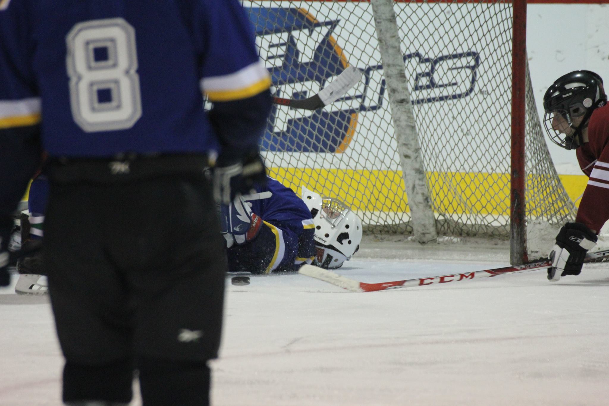 équipement. Pendant ce temps, les Blues ont dû se débrouiller avec un joueur additionnel sur la patinoire pour combler le manque de leur gardien.