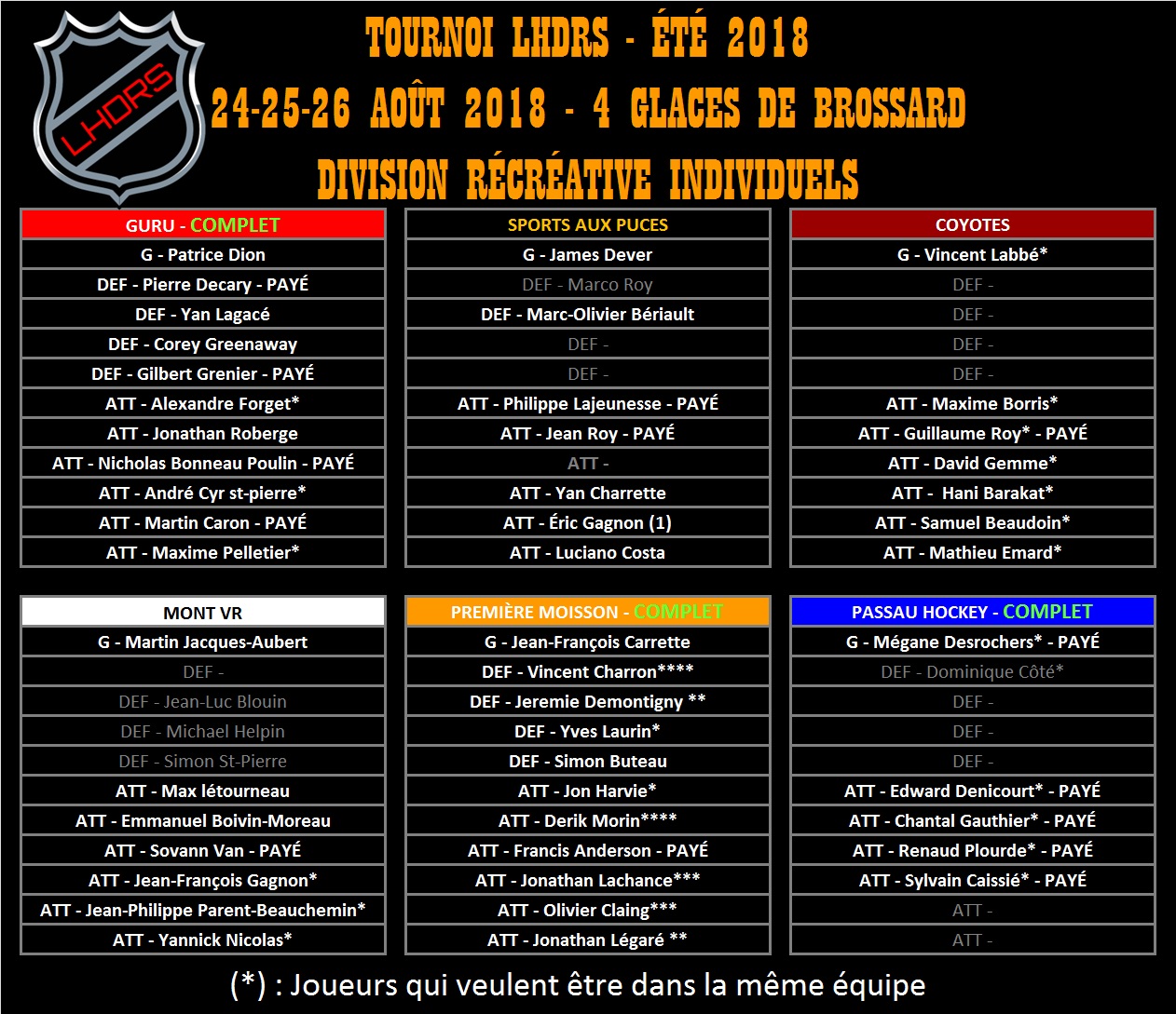 TOURNOI LHDRS-SPORTS AUX PUCES ÉTÉ 2018 - DÉJÀ 46 ÉQUIPES - BIENTÔT COMPLET