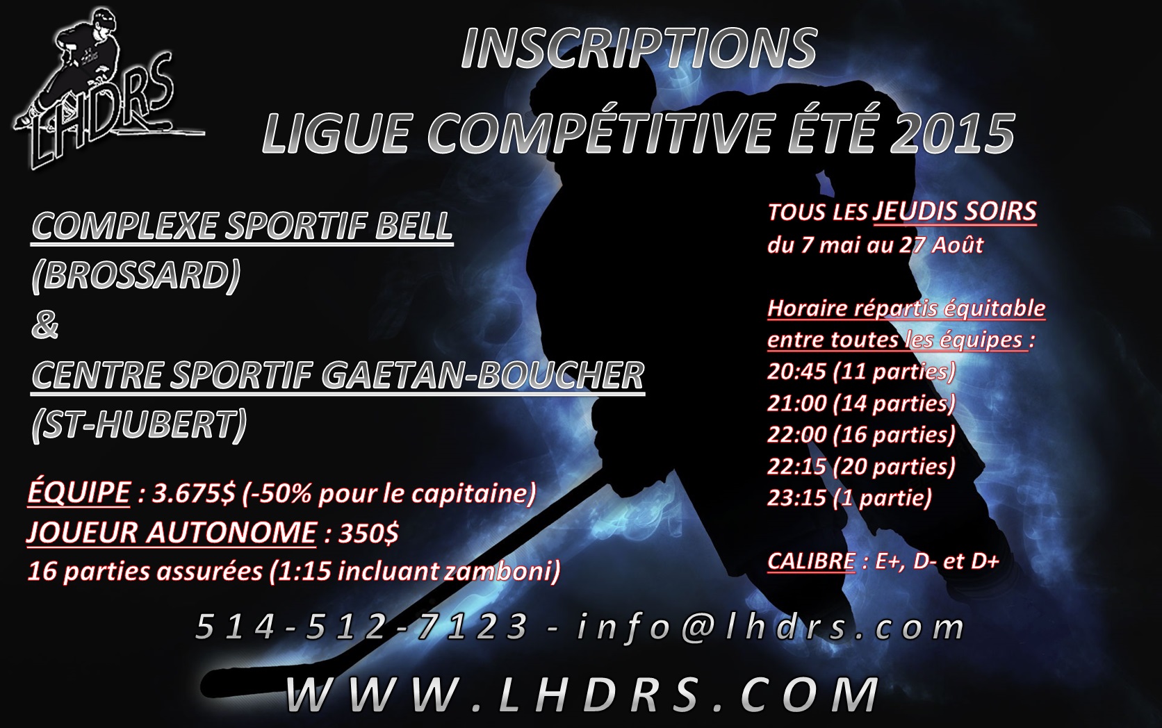 INSCRIPTIONS LIGUE COMPÉTITIVE ÉTÉ 2015